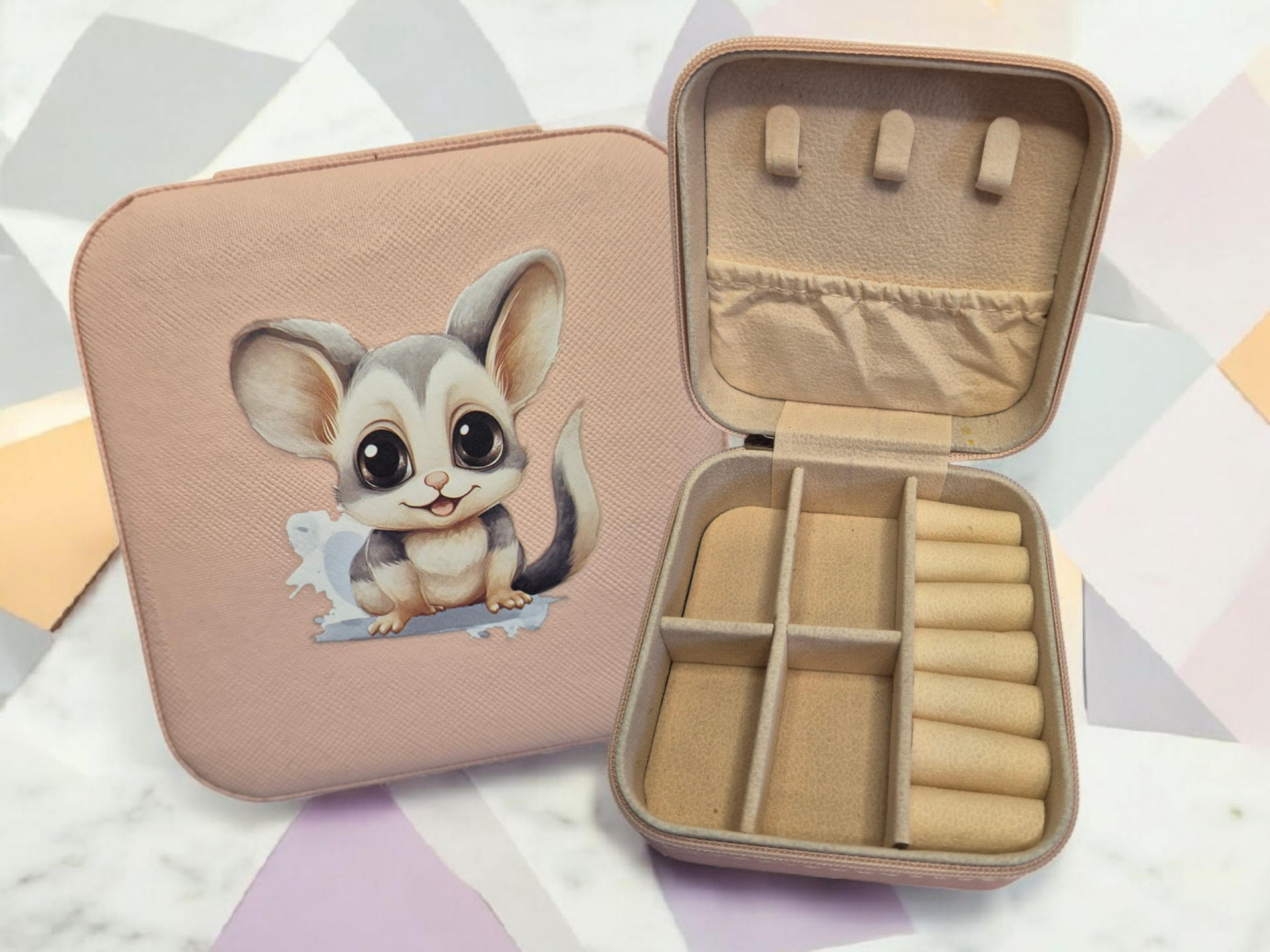 Verstauen Sie Ihre Schmuckstücke sicher und stilvoll in diesem eleganten Reiseschmuckkästchen in Apricot. Mit einer Größe von 10x10 cm bietet es ausreichend Platz für Ihre Kostbarkeiten und besticht durch sein einzigartiges Design. Ideal für unterwegs, damit Ihr Schmuck stets geschützt und organisiert ist.
