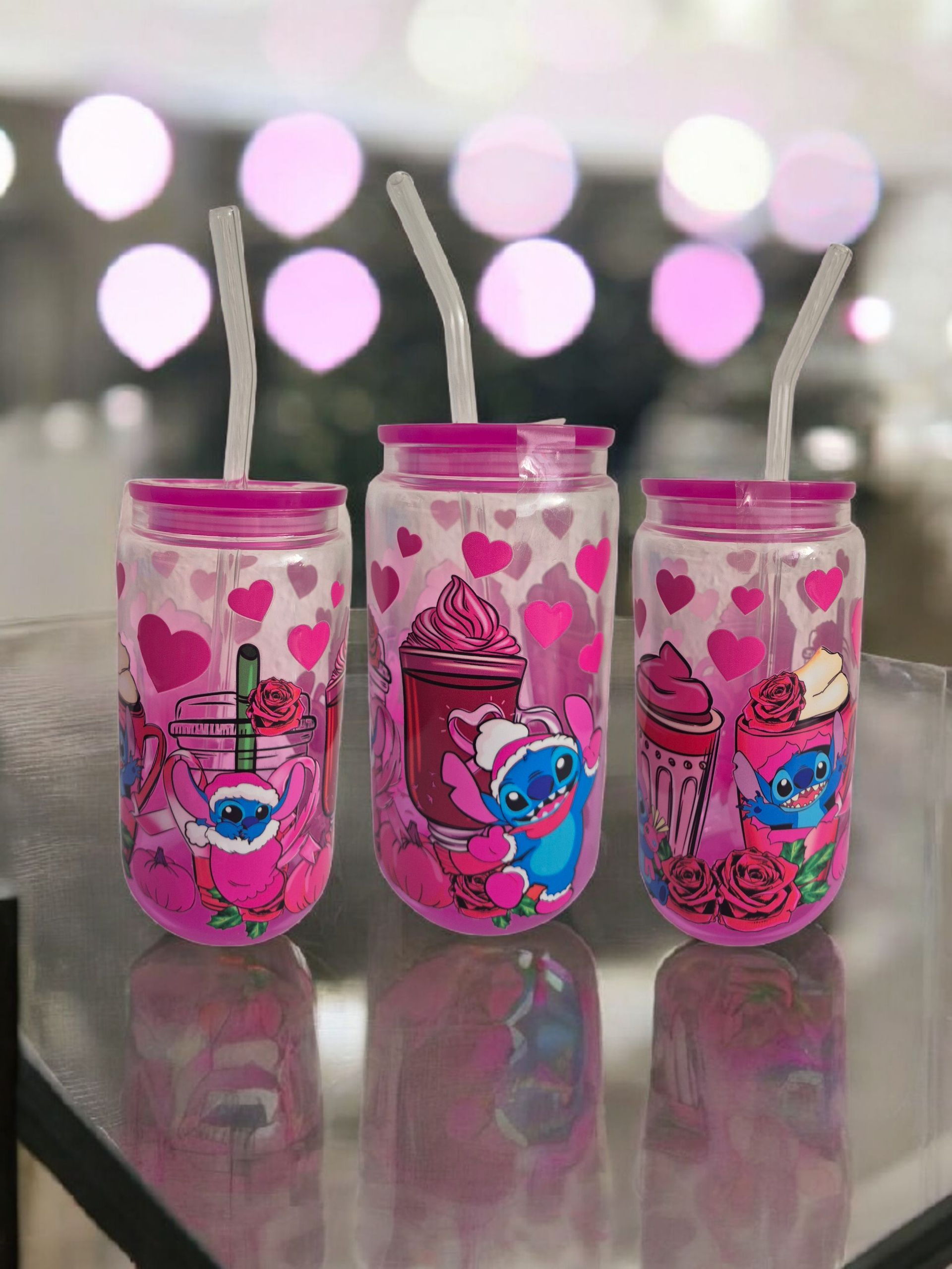 Verleihen Sie Ihrem Trinkvergnügen eine persönliche Note mit meinem einzigartigen Glasbecher mit Deckel und Strohhalm. In einem ansprechenden Rosa gehalten, besticht dieses Trinkglas durch ein charmantes Stitch Motiv , das sowohl Jugendliche als auch Erwachsene begeistern wird. Mit einer Kapazität von 0,5 Litern ist es der ideale Begleiter für alle Arten von Getränken.